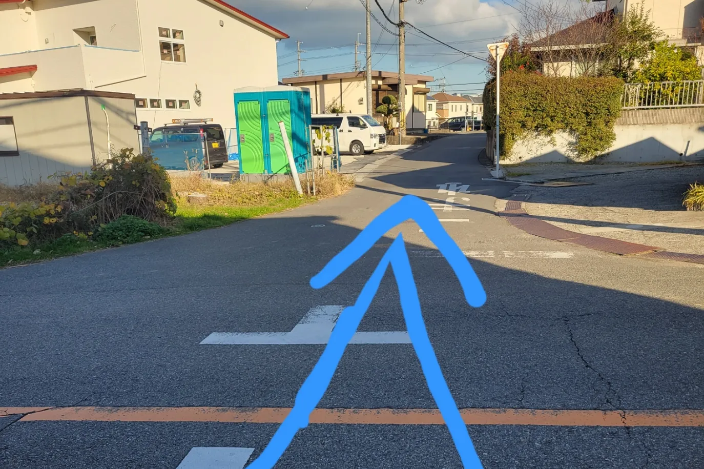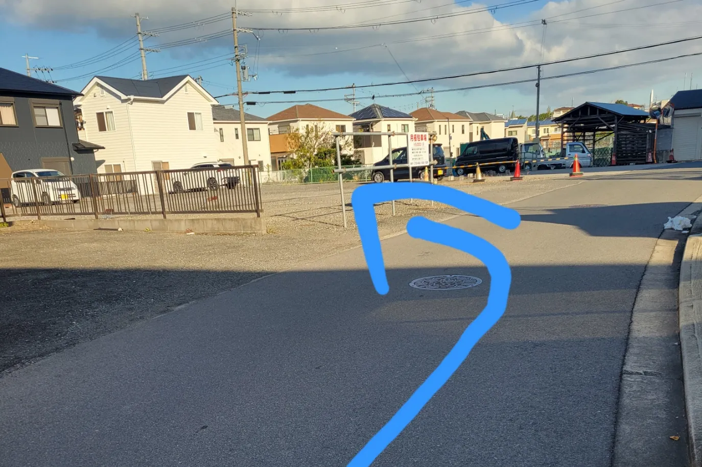 散髪屋さんの横の細い道を車二台分上に上がっていただきますと、左手に大きな駐車場がありますので、入ってすぐ左の22番23番に止めて頂いても大丈夫です。